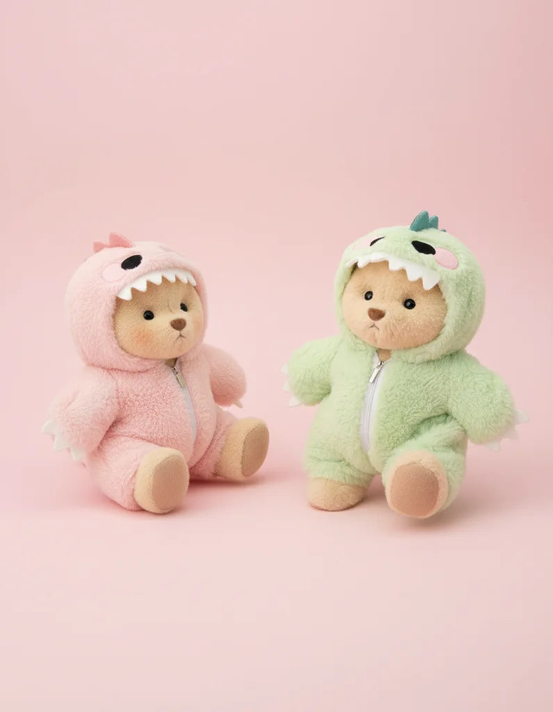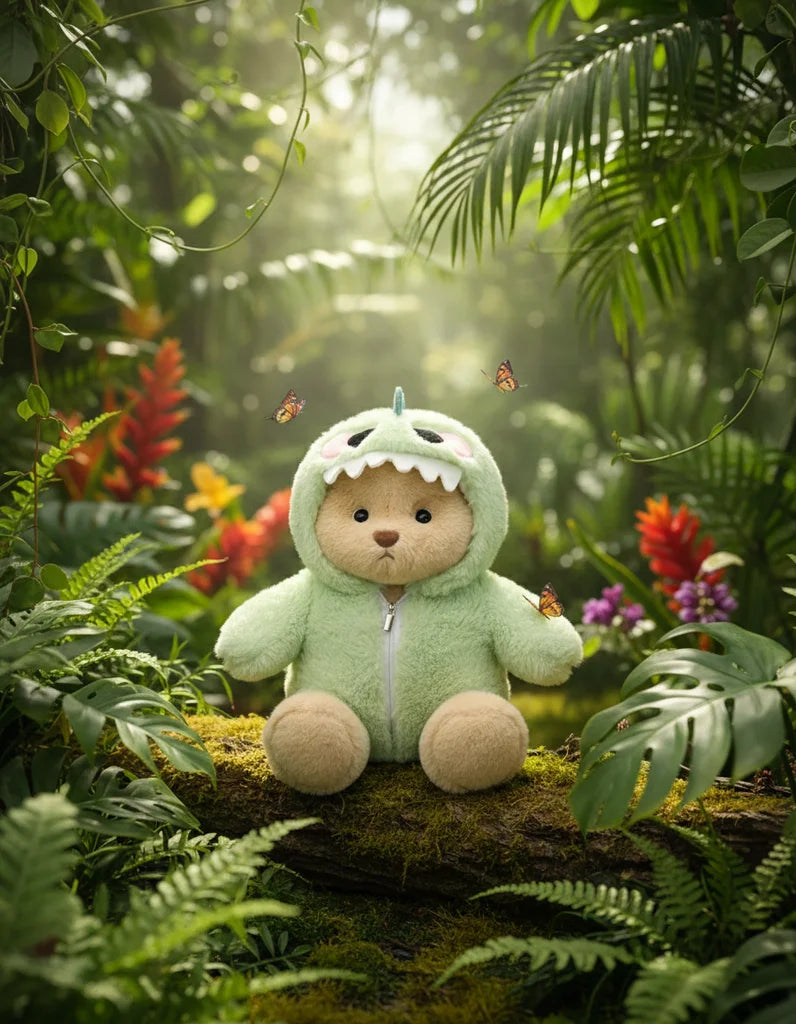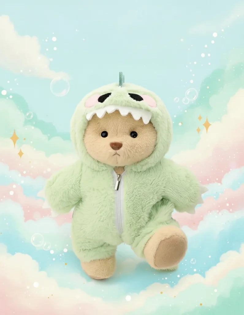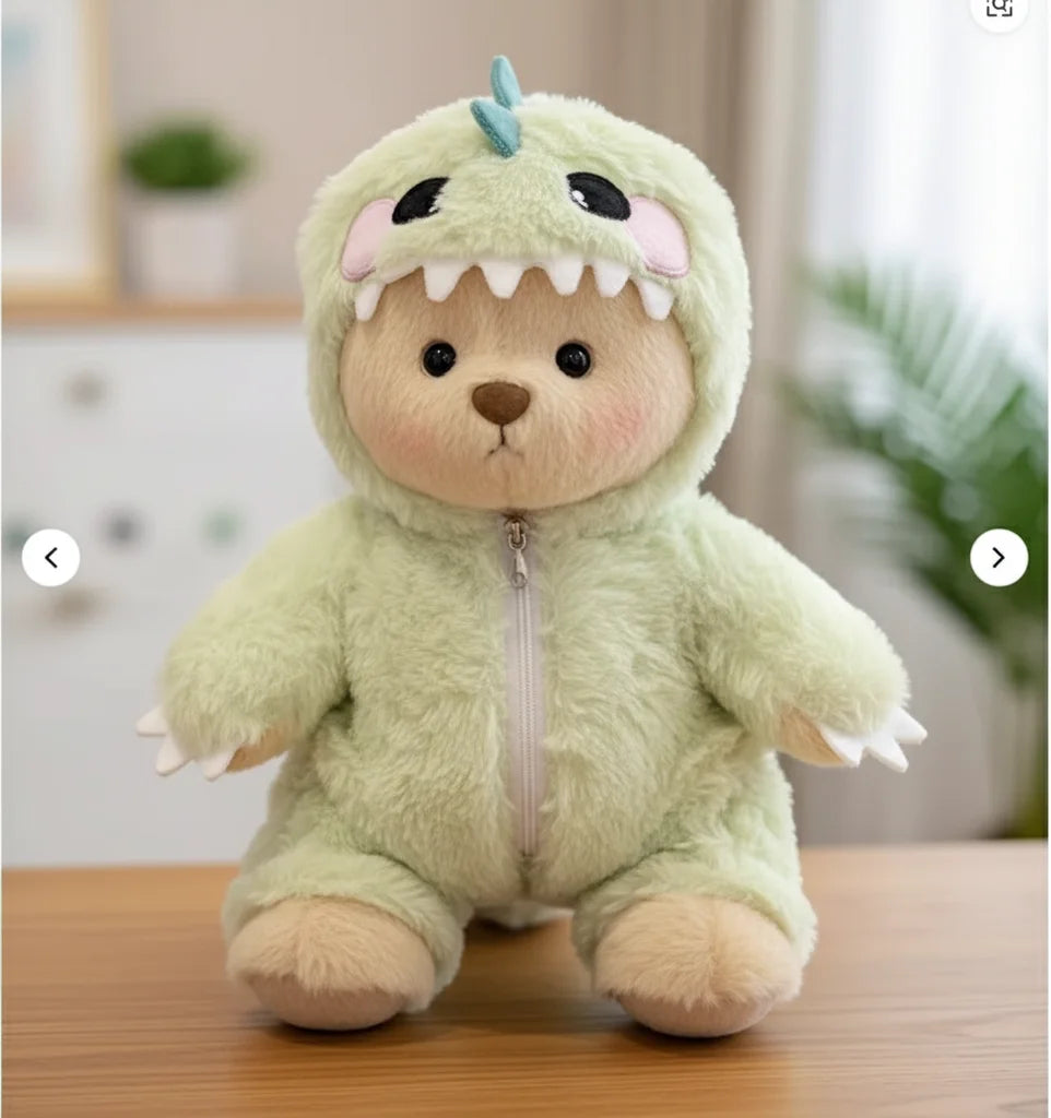 Break free from boring with a charming bear in an adorable, whimsical dinosaur costume. it's a statement piece that sparks joy and conversation.